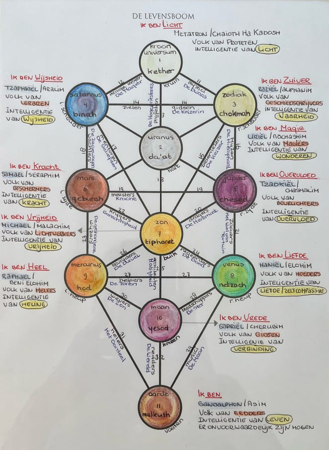 Men noemt een symbool als de levensboom ook wel een glyfe. Tussen de 11 cirkels (sefirot) op de levensboom tel je 22 paden. Dit benoemt men ook wel als het Engelen- of zielenpad. De mens loopt in zijn leven eerst het pad van de Aartsengelen langs de sefirot van onderen naar boven (van 11 naar 1) en dan loopt hij over de paden terug van 11 naar 32.